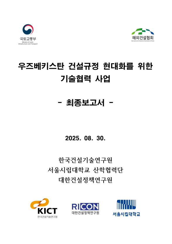 | 우즈베키스탄 건설규정 현대화를 위한 기술 협력사업 최종보고서(영문) | 2025-11-10 |